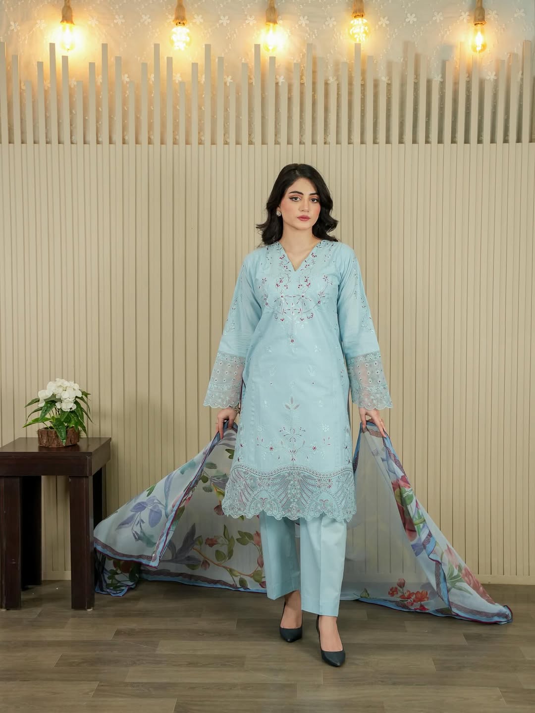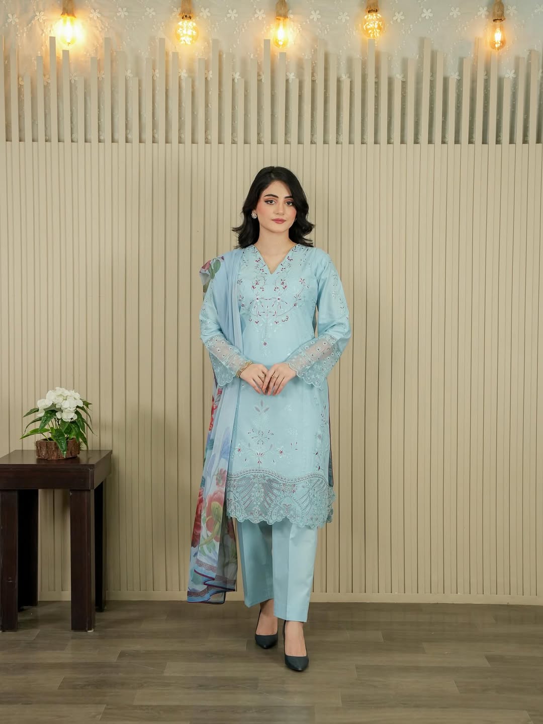 Crafted from premium cotton fabric, this elegant outfit combines comfort with timeless style. The delicate embroidery work adds a refined touch, making it perfect for casual gatherings and semi-formal occasions. Designed for effortless grace and everyday wear.