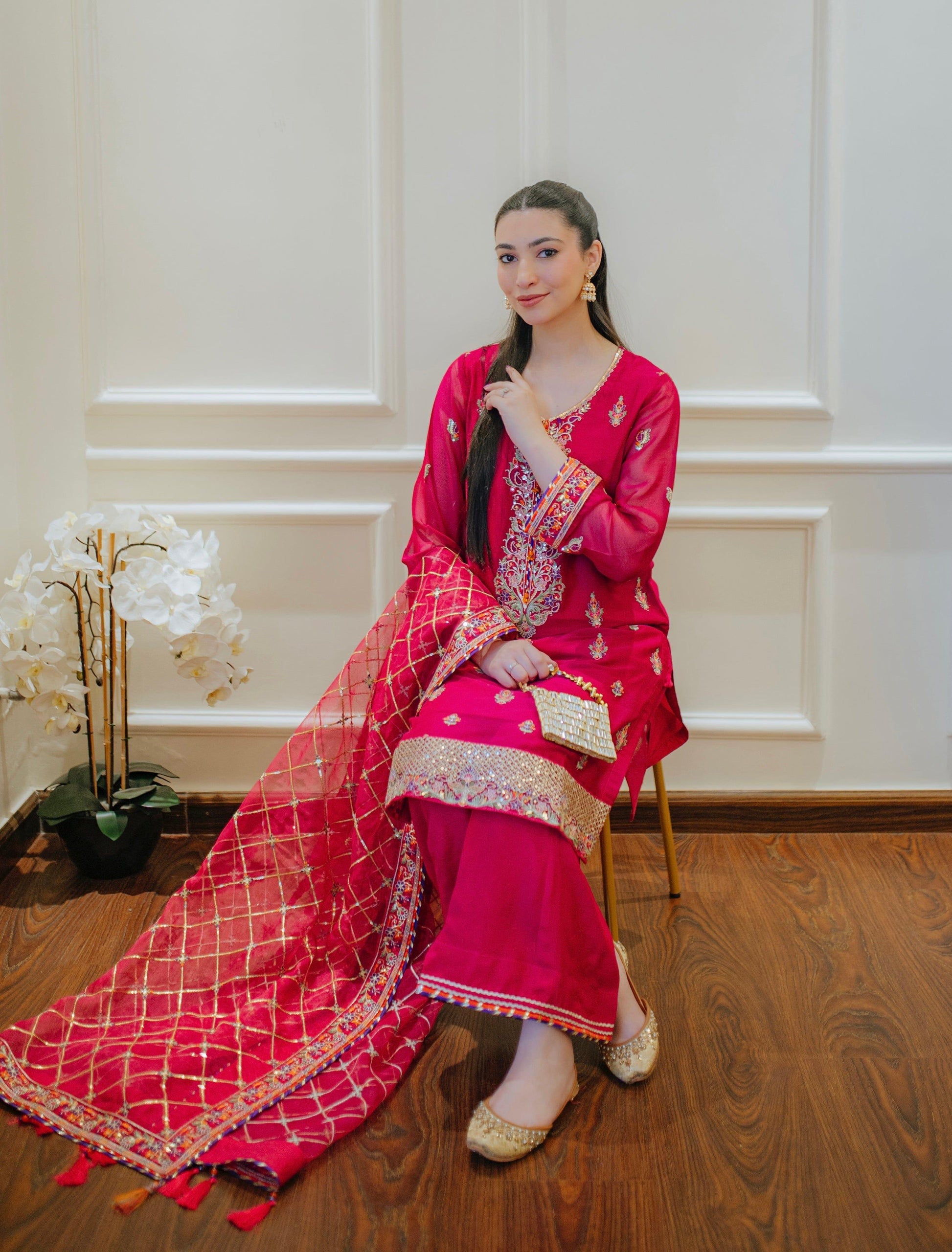 Made with premium Chiffon fabric, this elegant 3-piece suit features fine embroidered work that adds a touch of sophistication to your look. Designed for all occasions, it offers a graceful fall and a refined finish — a perfect blend of style and comfort.