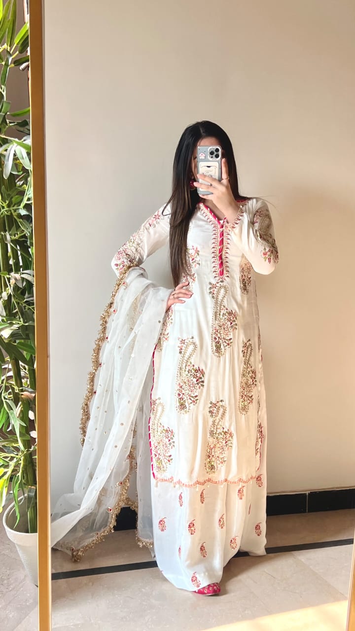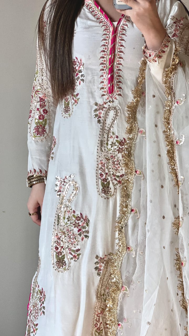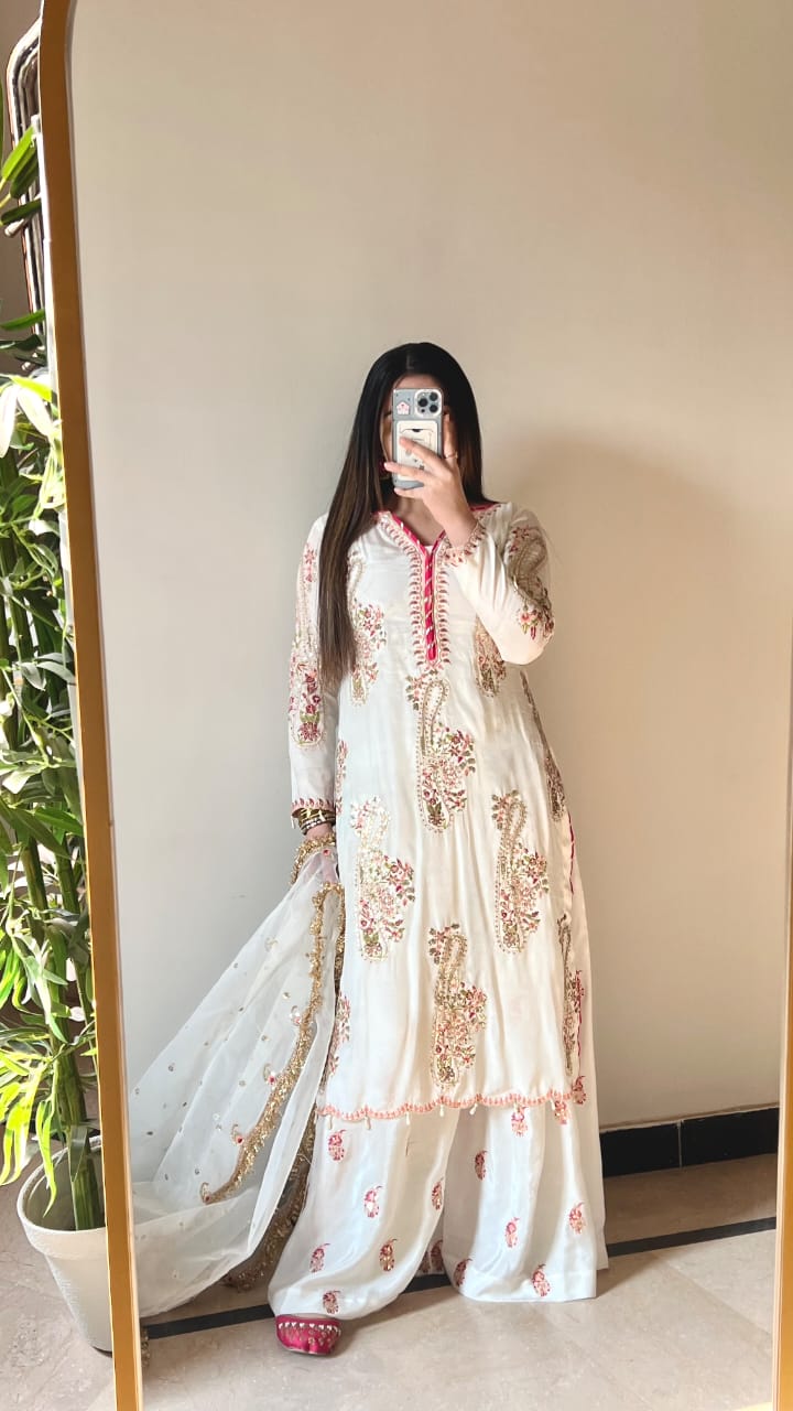 Made with premium Chiffon fabric, this elegant 3-piece suit features fine embroidered work that adds a touch of sophistication to your look. Designed for all occasions, it offers a graceful fall and a refined finish — a perfect blend of style and comfort.