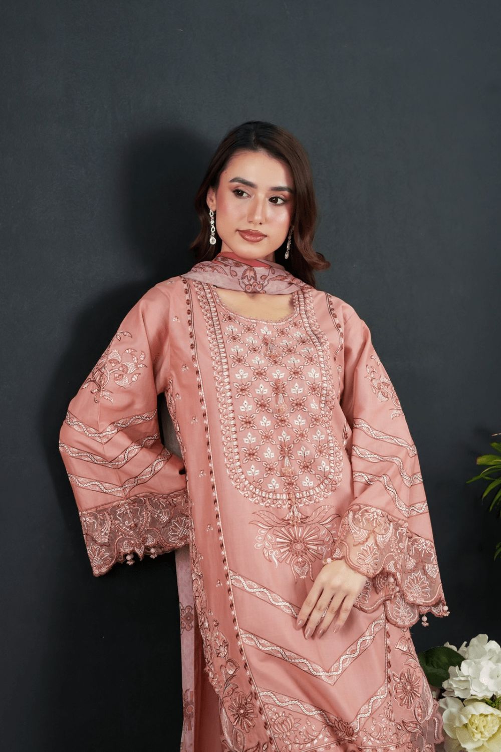 Areen reflects effortless charm and timeless elegance. Crafted from soft, breathable cotton fabric, this 3-piece suit features delicate embroidered work that adds sophistication to your everyday style.